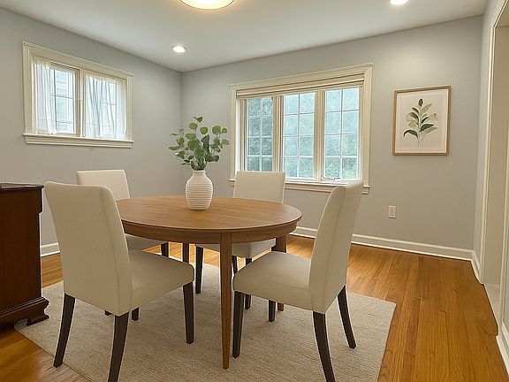 Bright Living Spaces: Freshly painted interior with refinished hardwood floors, recessed lighting, and large windows that fill the home with natural light.