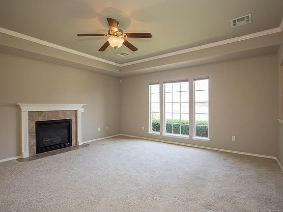 Located adjacent to walking trail and green belt in quiet neighborhood. Spacious great room for entertaining, open to dining and kitchen. New roof in 2016, New Tile in Bathrooms, Washer, Dryer & Refrigerator remain for Buyer. Great value in Jenks.