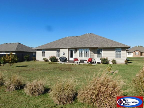NEW PRICE. 514 W 9th Street, Webb City. Quality Built by Cantrell Patriot Home. Gorgeous one owner 4BR, 2BA home in Alpine subdivision right next to King Jack Park. Inviting front porch welcomes you into the foyer, that opens to the large living room with cathedral ceilings, lots of natural light, plus a gas log fireplace for those cozy winter nights. Dining area is open to the beautiful kitchen with stainless steel appliances, breakfast bar and pantry. Large master bedroom and bath with double vanity, walk-in shower, walk-in closet. This is a split bedroom floor plan, bedrooms two, three and four are on the other side of the living room. Each bedroom spacious with full size closets, they share a full hall bath. Attached 3+car garage with workshop area, all the space you need!