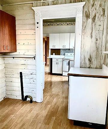 Price Improvement! Motivated Sellers! Will look at reasonable offers. Historic 2 story home with original woodwork and spacious rooms sitting right off of Clay Ave. Within walking distance of all schools, parks and stores in Plattsburg. 1 large and 1 smaller bedroom with 1 full and one 1/2 baths all on main floor. Front entry with stairs going up to the 3 other bedrooms and other full bath and a small alcove that would be a cozy game area or library. Storage under the steps. Back entry brings you into the laundry then enter the kitchen with it's quaint metal cabinets and creative storage. Large dining area with an alcove that is large enough for an extra fridge or freezer. Front and back driveway entry, detached, solid built workshop and garage. Basement entry is from outside and serves as a storm shelter and houses the heating and water heater. Original wood floors are under the carpet and vinyl flooring. This home has been well loved and used and in need of some touch-ups and your personal touch. Sold As is.