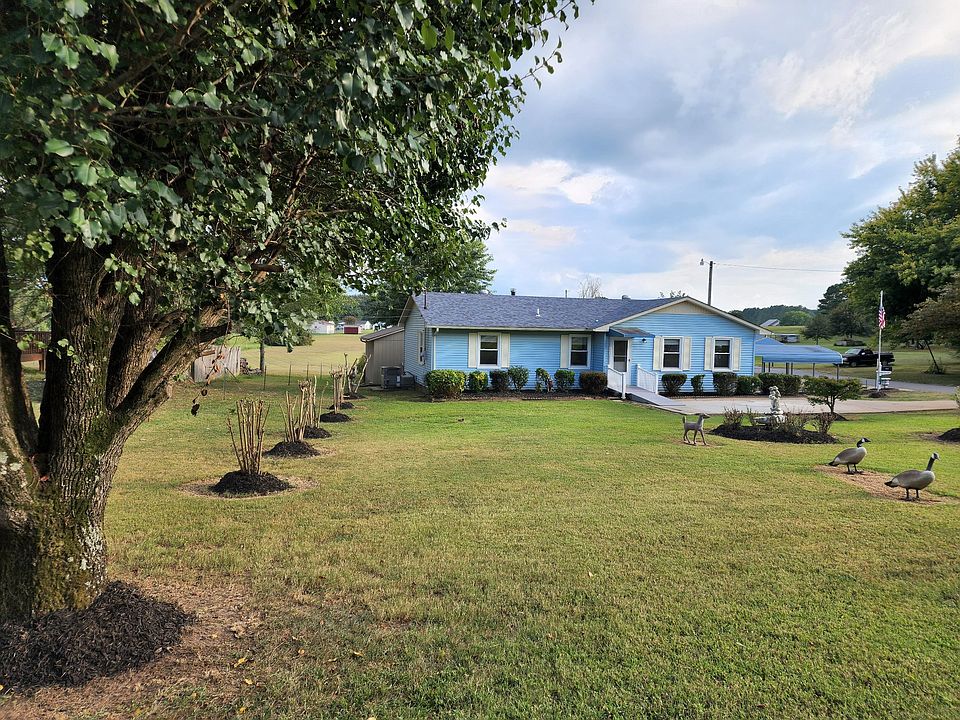 $7,000.00 Toward Closing cost. Take a look at this lovely affordable home with lots of updates. Scraped and painted ceilings, new wall paint called First Star to match the new 100% waterproof vinyl plank flooring, brush Nickle hinges, door knobs, and hardware. The bedroom suite has a new full bath and his and her closets. Two other bedrooms have a walk-in closet. Both bathrooms have tile showers and new vanities and toilets. Large utility room. The kitchen has good space with many cabinets, a pantry, a new dishwasher, and a microwave. Good size living room. A large covered back patio deck is great for relaxing in your new home. Two ample storage sheds can be used as workshops, and the 20 x 12 workshop has power. Front and backyard has and many trees .