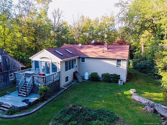 SPRAWLING Raised RANCH w/ $20,000 HEATED 20 x 16 SUNROOM ADDITION w/ SKYLIGHTS, TILED FLOOR and BRIGHT WALL TO WALL WINDOWS w/ French door leading to 20 x 16 Double decks. GORGEOUS BRAZILIAN CHERRY FLOORING through out and STAIRS coming in. Living room has a big BAY WINDOW and is OPEN to the dining room and sunroom. $ 35,000 DAVID HECHT CUSTOM kitchen w/ QUARTZ COUNTERS, TILED BACK SPLASH & RADIANT TILED FLOORING with appliances conveying BOSCH dishwasher too. NEW $5000 bathroom w/ GRANITE VANITY. 3 bedrooms on main level. LOWER level has a FAMILY ROOM, OFFICE, laundry area, HEATED WALKOUT workshop and another HEATED room for crafts or a play room. PAVE DRIVEWAY leads to 768 sq ft GARAGE w/ LOFT above. Sits back off the road close to 395, MASS and RI. on 3.30 ACRES! 1452 sq ft on main level and 800 finished ft in lower level.