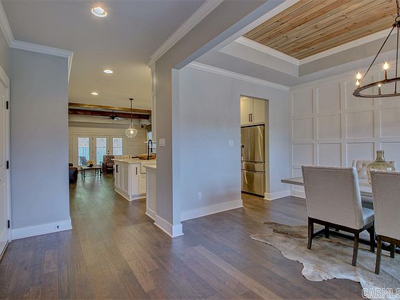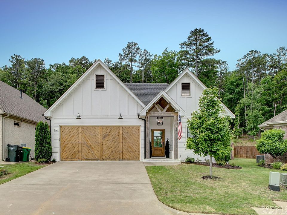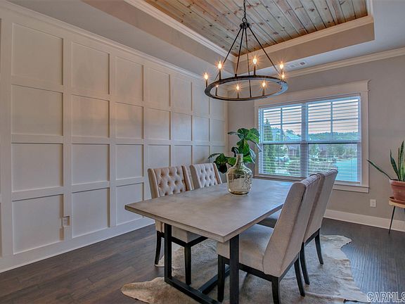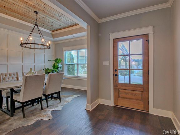 Custom built Wildwood Place beauty with extras galore and lot that backs up to greenspace; Hardwoods and tile throughout (no carpet) and built in surround sound system; Chef's kitchen with oversized island, slab granite, porcelain farm sink, stainless appliances (fridge conveys), and ceiling high cabinetry; Inviting living area with gas log fireplace, built in bookcases, exposed wood beams, and shiplap accent wall; Formal dining room with wood ceiling and wood enhanced accent wall and separate laundry room with sink adjoining mater suite; Gorgeous master suite with vaulted ceiling, stylish black tile in bath, and large walk in closet with numerous built ins; Covered back patio with wood ceiling and tv hookups, $8,000 custom garage door, Tesla charging station in garage, tubular guttering, and electrical outlets in eaves for holiday lighting; There is also a neighborhood pool, park, and walking trail exclusive to Wildwood Place; Come and get this one before it is gone.