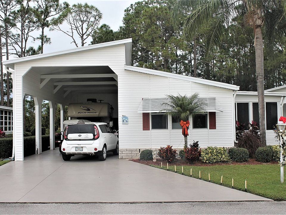 2 BR 2 BA 960 SQ. FT. Plus large 12x25 windowed Florida Room, Motorport home. Fully Furnished, Newly Painted throughout, ceramic floors in kitchen and bathrooms Laminate floors through the rest of the home, Pavement repainted 2019, New refrigerator and microwave in 2019, New sprinkler pump in 2019, New AC in 2016, New Roof 2015.
