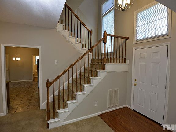 Wonderful home on cul-de-sac in desirable Harrington Grove! Leesville School District per WCPSS policy. Check current school district. Spacious kitchen w/ granite countertops, lots of counter space & pantry w/ adjustable wooded shelves. Gas logs in family room. Interior freshly painted, new carpet upstairs. Large master suite w/ cathedral ceiling, WIC closet & updated shower. Updated hall bath. Nest thermostat makes climate control easy. Large deck-perfect for entertaining. Shed, flat lot & storage loft!