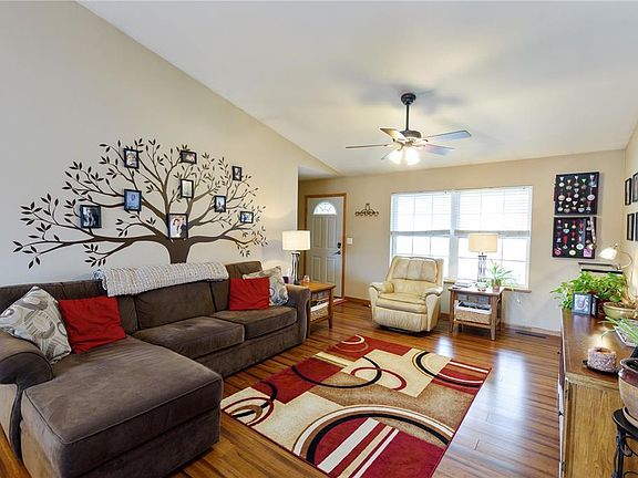 Conveniently located off Hwy 13, near Linn Grove Elementary school, parks, and grocery stores, this move-in ready, 4 bedroom, 3 bath ranch home offers a split bedroom floorplan and daylight windows in the finished lower level. From the moment you enter this home, you will notice the newly installed Bamboo flooring, vaulted ceiling, and open floorplan that provides a comfortable, spacious feel. A large, maintenance free deck off the dining area provides ample space for grilling and outdoor meals in the summer and has stairs leading down to the fire pit and raised garden beds in the back yard. The kitchen and dining area separates the 2 main floor bedrooms and master suite, you will find the 4th bedroom, 3rd full bathroom, storage area, and rec room in the lower level. Other features and updates include a new dishwasher and water heater, gas fireplace and custom bar in the lower level, a heated garage, and main floor laundry.