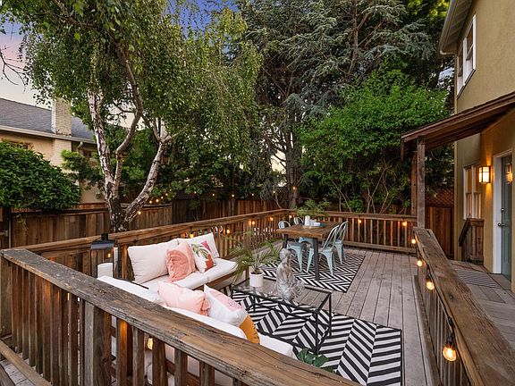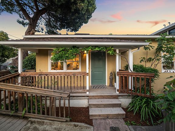 Wonderfully located on a corner lot in Prime Rockridge, this upgraded 4BD/2.5BA is an oasis with flexibility and unique accessibility including an expansive ground floor primary suite. A blooming English garden and wide porch welcome you to the 2383 SQFT home, where windows galore and multiple skylights splash sunshine throughout. The home opens to a bright and airy living room with a vaulted ceiling, recessed lighting, and hardwood floors. The adjoining kitchen is stylishly renovated with a convenient passthrough to the dining area. Down a hall, find a powder room, laundry, & the large primary suite. Enjoy a dual vanity ensuite bath with a door onto a lovely deck overlooking the backyard. Relax on the deck or entertain friends in the beautifully landscaped garden. You can also access the backyard retreat from the kitchen or the stairwell. Rare ramping and widened passages uniquely accommodate accessibility. The second floor is an opportunity for independent or multi-generational living with separate entrance, two bedrooms, full bath and family room (former owner housed attendants in this space). The basement is huge and ready for storage or your imagination. The home also enjoys 2 off-street parking spaces. Near Rockridge BART & world-class amenities of College Avenue.
