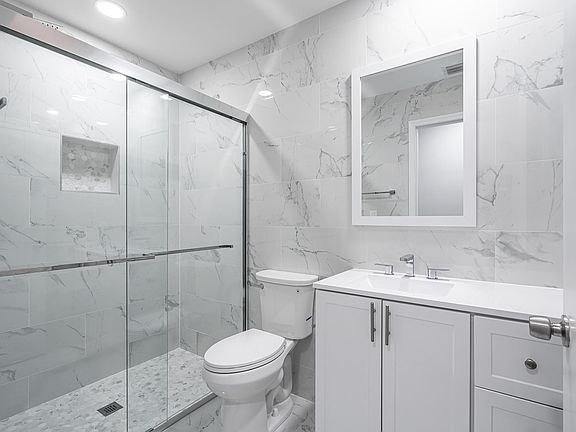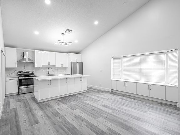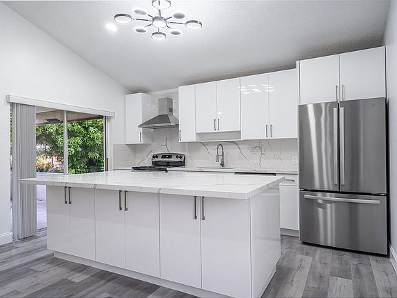 Modern, completely renovated 4 bedroom 3 full bath single family house with large fenced in backyard, perfect for entertaining, with screened in patio and enough room to park large boat or RV, no HOA. Everything is Brand New! Split floor plan, vaulted ceilings. European style gourmet kitchen with Carrara quarts top and backsplash, all S/S GE appliances, and huge double sided island. Dream master suite with walk in closet, double vanity with quarts top, freestanding tub and glass shower. 3 more regular sized bedrooms and 2 more full baths. Huge 2 car garage. Washer and dryer in garage. Ideal Location! Just a minute from I95, 8 min to the beach, 5 min to FAU, shopping malls, restaurants, etc. Won't last!