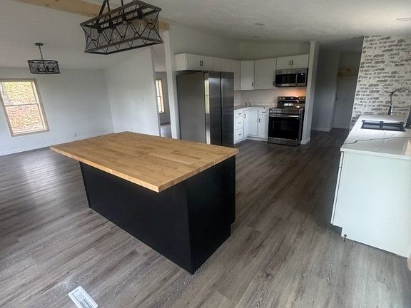 Very special acreage and remodeled manufactured 1800+ sq ft home. Awesome views from newly constructed deck. Full block foundation. Most all components are newer in this home. Re-drywalled throughout, luxury vinyl flooring, furnace, central air, remodeled bathrooms and kitchen. Huge island and pantry. Home was trimmed out with Pine boards. Extra insulation. Ample parking. Nearly a new product. VA/FHA compliant. Hunt off your deck in peace and quiet.