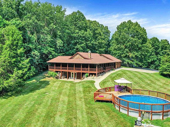 Check out the pictures of this truly unique home and property!  This lovely home features granite countertops, solid oak doors, hardwood flooring, Italian ceramic tile, walk in master bath shower, a huge family room with a lovely stone wood burning fireplace, and open floor plan with vaulted ceilings.  The home and outside building have a backup 20KW generator.  The property offers 22 plus acres of mostly wooded areas with nicely mowed areas as well.  The spring fed stocked pond is approximately 40 feet deep and provides excellent fishing.  Wildlife abounds and offers excellent hunting areas, or enjoy nature watching from the expansive wrap around porch. The heated above ground pool is 28 feet around by 5 feet deep and is located just off the wrap around porch.  The property sits back from the road offering much privacy and is paved for easy access to the home.  The outside building is 50x50 with 30x50 of that being heated and cooled; the 20x50 area is heated only.  This structure has 16 foot ceilings and is entirely insulated.