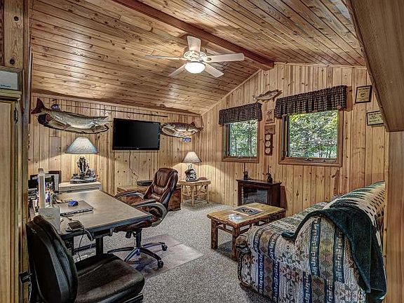 - Interior Features: Ceiling Fan, Cathedral Ceilings, Sauna