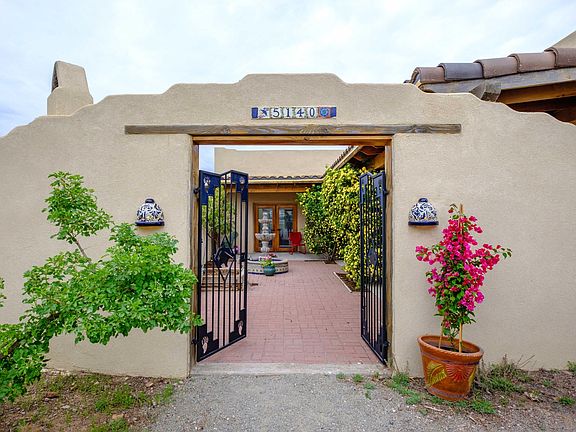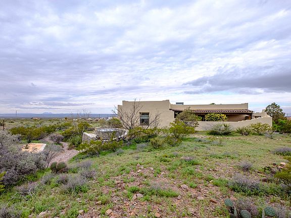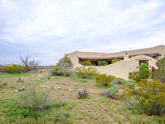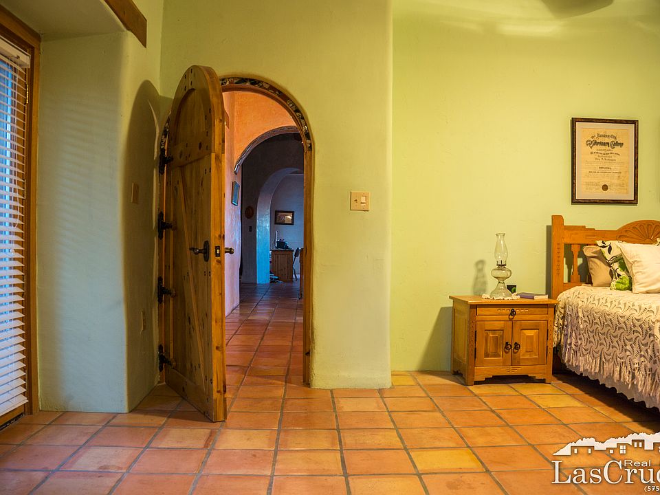 This adobe home in Talavera is nestled in the foothills below the Organ Mountain Desert Peaks National Monument. Sitting on 2 acres of pristine bajada surrounded by pinon pine, sumac, honey mesquite and apache plum, this 2,162 square foot home includes 3 bedrooms, 2 full baths, and a casita separate from the main structure. On the west side of the garage is RV parking with hook-ups. With hand plastered adobe walls, vigas, and high ceilings, this hacienda style home includes authentic Mexican tile, ceiling fans, and Saltillo floors throughout. But the real beauty of the house is the 4 french doors that open out from bedrooms and the living room onto fresh air of the high desert and patios that surround the house. The true adobe walls are made from the clay soil of the Rio Grande Valley in this one of a kind home, that includes modern features of comfort like refrigerated air, double pain windows, and a pellet stove. The property includes a fenced dog run and a detached casita with bathroom, partial