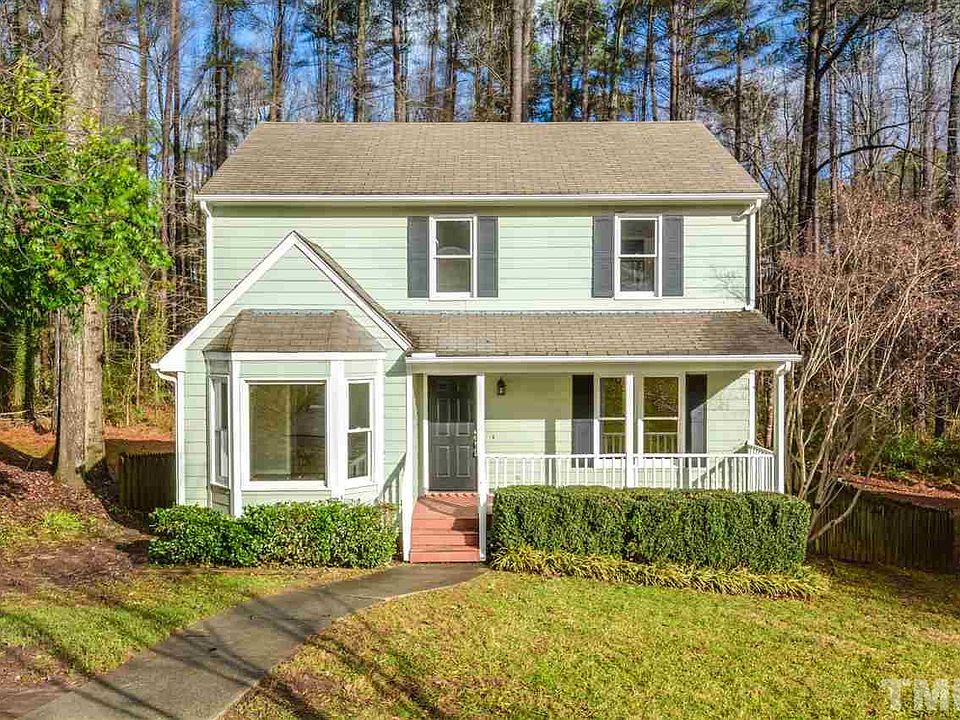 This Raleigh two-story offers a fireplace and a patio. Upgraded features include fresh interior paint, updated HVAC, and new vinyl flooring in select rooms.