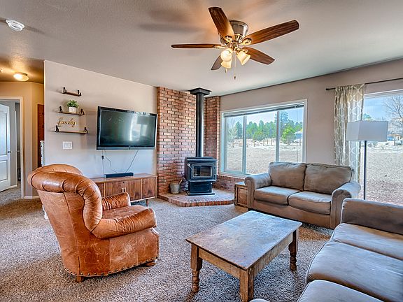*VIRTUAL TOUR ATTACHED. Simply click and drag to tour your new home!* This great property is only three years old! Enjoy the split floorplan featuring an outstanding view of the San Francisco Peaks, plenty of space to park your RV or let the horses roam and a large master suite with a walk-in closet! The ambiance of this beautiful home is nothing short of breath taking. Cozy up next to the heavenly wood stove with a stunning brick backdrop and enjoy a movie night with guests. You'll fall even more in love with this amazing home as you enter the kitchen. This gorgeous kitchen boasts generous cabinet space, an island and even room for an at home office! Three bedroom, two bath, 2.5 acres, it doesn't get much better than this!