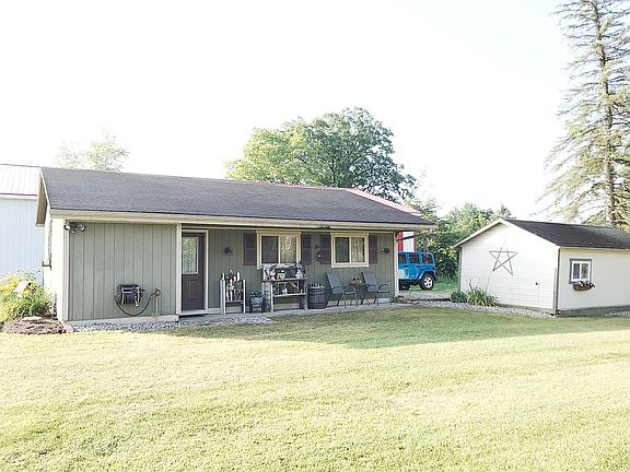 5140 TR 313, Millersburg 330-231-4908, Scott Our traditional ranch home sits on the corner of a quiet neighborhood street with a beautiful maple tree anchoring the corner of the home. With well mannered and mature landscaping- you can enjoy beautiful color during the summer months. A enclosed patio spans off the dining room for gatherings and allows access to the attached garage. A large detached garage (with two garage doors) sits at the back of the property for a great workshop and a small storage shed adds extra storage for gardening supplies. Walking inside (from the garage), you’re greeted in the mudroom with the laundry room/half bath to the left and a storage bench to the right. Between the mudroom and kitchen, there’s a small walk-in pantry. The kitchen features maple cupboards and stainless steel fridge/stove top. The kitchen island fits two barstools and the dining room has a painted sandstone wood fireplace. Off the kitchen, a office/man study features a variety of v-groove hardwood paneling for a rich and authentic feel. When entering from the front door, the living room spans to the left- mirroring the dining room. A small linen closet and larger closet add extra storage. The right side of the home features two moderate size bedrooms (both with closets), a full bath (shower and tub combo) and a master bedroom en-suite with a walk-in shower and double vanity. The half basement is accessed through the garage. In the back basement corner, there is a finished room perfect for an office or workout area. The basement also holds all the water mechanics for the home- which have recently been replaced. The home also features a BEAM central vac unit for easy cleaning.