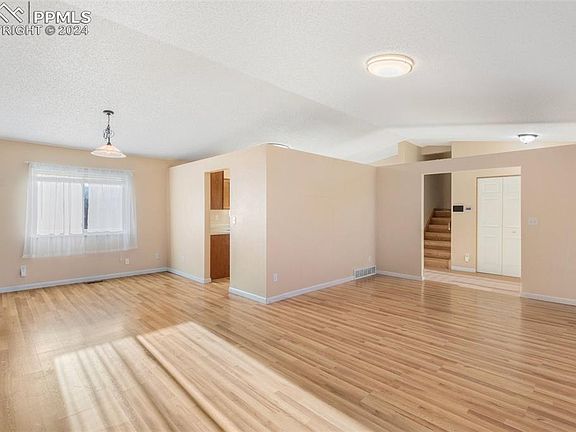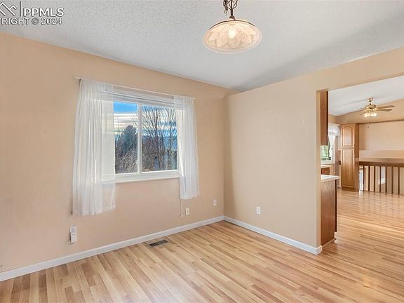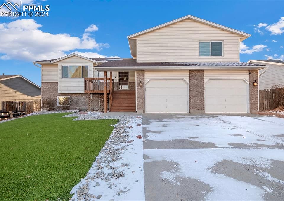 Welcome to a beautifully maintained home offering an abundance of space with large bedrooms and two family rooms. The open floor plan on the main level seamlessly connects the eat-in kitchen, dining room, and living room, creating an ideal setting for gatherings. The lower level family room with a gas fireplace provides a cozy retreat, while the garden level basement offers versatility with a spacious bedroom, full bath, utility/laundry room, and another expansive family room. 2023 a/c, new furnace Updates include kitchen countertops, refreshed bathrooms, and quality flooring throughout. From the dining area and kitchen, you'll be captivated by the stunning evening views. Imagine looking out the windows as the sun sets, with a breathtaking view all the way to Pueblo. The magic continues upstairs with amazing views from two bedrooms, making this home a true gem. The home also features three-pane windows for energy efficiency, and the potential for a wet bar in the basement family room. Conveniently located near shopping, schools, and Ft. Carson, this self-managed non-HOA property is ready to offer you a comfortable and vibrant lifestyle.
