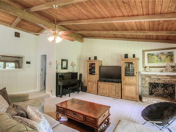 Lovely home on a beautiful tree lined street. Big open floor plan with vaulted wood beam ceilings. Tile entry leads to a spacious formal living room with sculpted carpet and gorgeous fireplace. Dual pane pella doors. Formal dining room and island kitchen with granite counters. 3 large bedrooms plus office with it's own bath and shower, perfect for extended family or home office. Upgraded master and hall bathrooms. Large corner lot with oversized 2 car garage. Front yard has a beautiful drought tolerant landscape. Covered patio with large back yard. This is a fantastic home in a great neighborhood