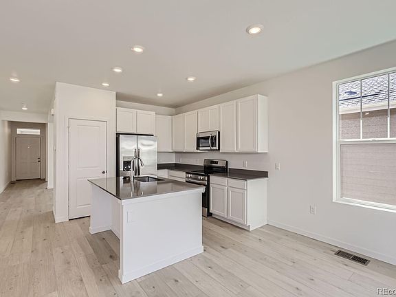 Age 55+ Gated Community at The Reserve in Green Valley Ranch. Beautiful Augusta Ranch plan by Lennar features 2 beds, 2 baths, great room, kitchen, flex space in lieu of bedroom 3, 2 car garage and unfinished basement! Gorgeous upgrades and finishes throughout including a slab quartz counters & island, luxury vinyl plank throughout the main floor, stainless steel appliances, carpeting, covered deck and more. Lennar provides the latest in energy efficiency and state of the art technology with several fabulous floorplans to choose from. Energy efficiency, and technology/connectivity seamlessly blended with luxury to make your new house a home. Green Valley Ranch offers single family homes for every lifestyle. Close to dining, shopping, entertainment and other amenities. Don't miss your opportunity. Photos are model only and subject to change. The active adult community has private roads that are privately maintained.