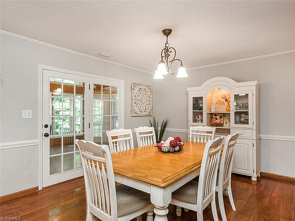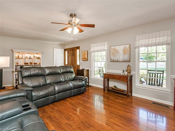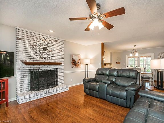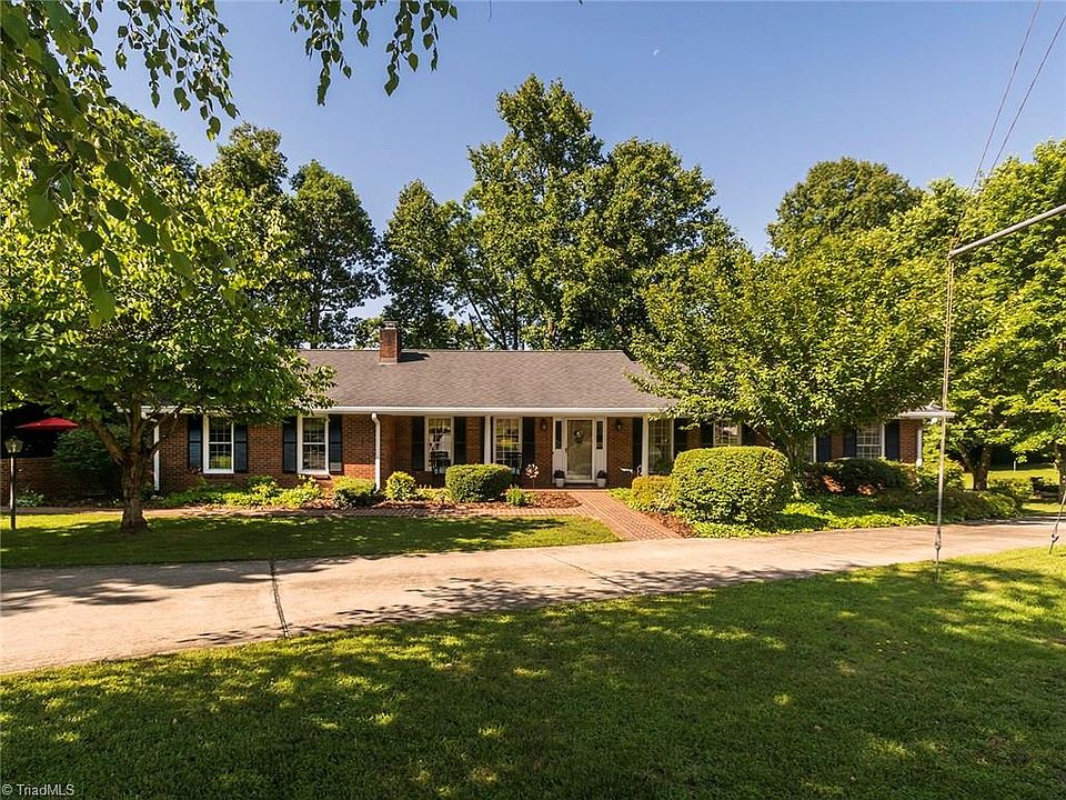 Pack your bags & bring them with you. Conv to I40, GSO & WS. Tastefully updated brick ranch w/open, flexible plan. Fireside great rm open to dining/kitchen. HUGE den w/brick accent wall & space for conversation, games, & play. Sunroom overlooks lake. Master suite w/generous BR, 3 closets, & updated BA: big shower w/subway tile surround/bench, 2 sinks & wood-look tile floor. Laundry/utility rm. Amazing storage. Relax/entertain on 26x20 patio. .92 acres. Firepit. Detached gar w/workshop. Extra parking.