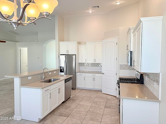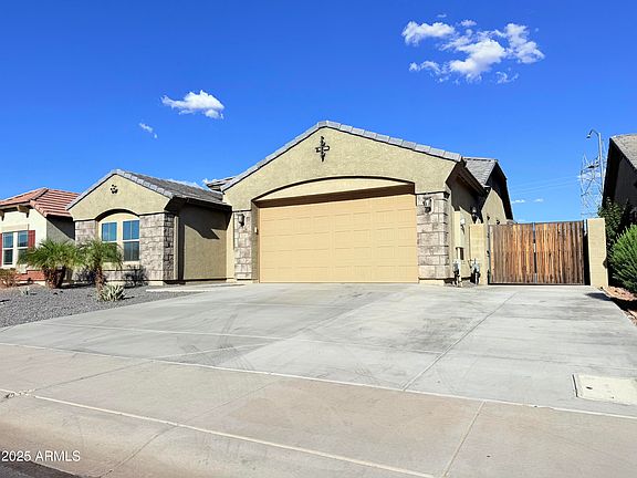 Beautifully upgraded and freshly refreshed, this Keighley Place single-level gem is ideal for first-time buyers, investors, or anyone seeking a stylish, light-filled great room home designed for entertaining! The split floorplan—one of Providence Homes' most popular designs—features nearly 1850 sq. ft. with 3 bedrooms, 2 baths, and an oversized 2-car garage perfect for extra storage, full size crew cab trucks or toys. The chef's kitchen impresses with gas cooking, staggered custom cabinetry, a large island, and all appliances included—making this home truly turn-key. Brand new interior paint and berber carpet really make the inside light and bright..... crisp and clean.Outside, enjoy a custom extended driveway, RV gate, and additional side-yard storage. Plenty of pavers in the backyard artificial turf and custom ramada round out this inviting outdoor living space
