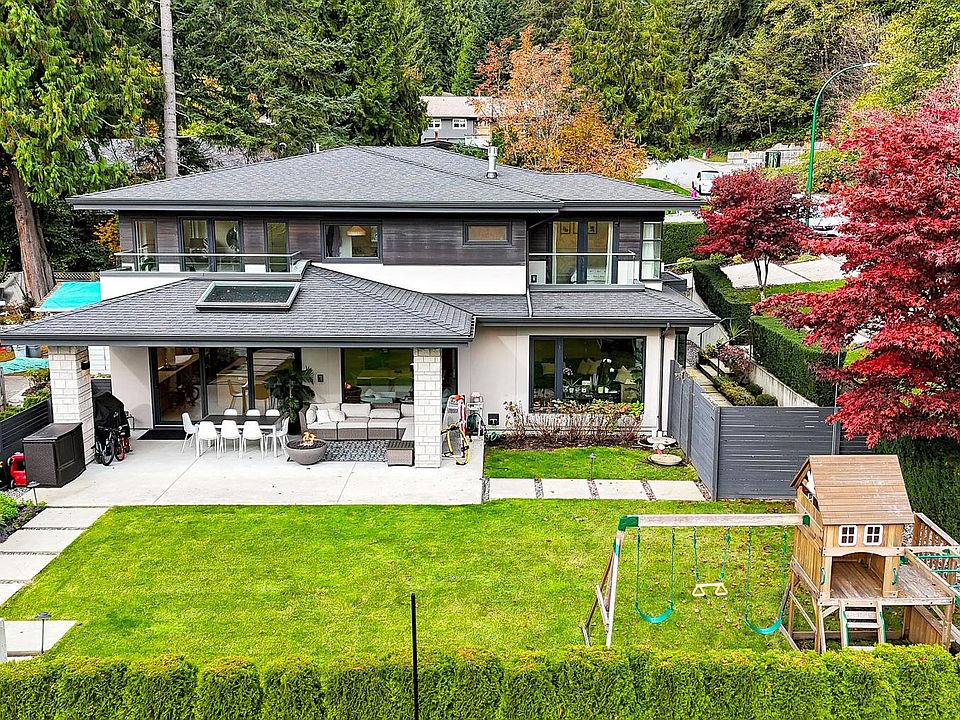 One-of-a-kind luxury custom home by Sprucehill on a bright, private corner lot minutes from Edgemont Village. This stunning residence showcases custom millwork, limestone exterior, floating stairs, and top-tier finishings throughout. Main floor features formal living/dining with exposed glass fireplace, Miele kitchen+ wok kitchen, office, mudroom, and a heated covered terrace that opens to a sunny flat backyard- ideal for indoor-outdoor entertaining and playground for the kids . Upstairs boasts 4 spacious bedrooms , including a 5-star primary suite . Downstairs offers a media room, rec room with bar & wine display, plus a legal 1-bed suite private access from the side The home features all the bells and whistles including A/C, HRV, radiant heat, back up generator, fire pit & more!