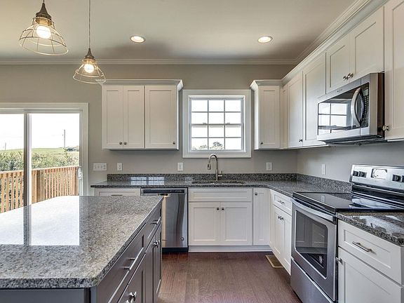 BRAND NEW custom built home with NO MONEY DOWN (if eligible)! Very cute 3 BR, 2 BA home w/ covered front porch, back deck, Kitchen has granite countertops, white custom cabinets, SS appliances, center island w/ grey cabinets that seats 2...tile in baths, hardwood floors in kitchen & Living Room, MBR has trey ceiling & walk-in closet, large bonus room!