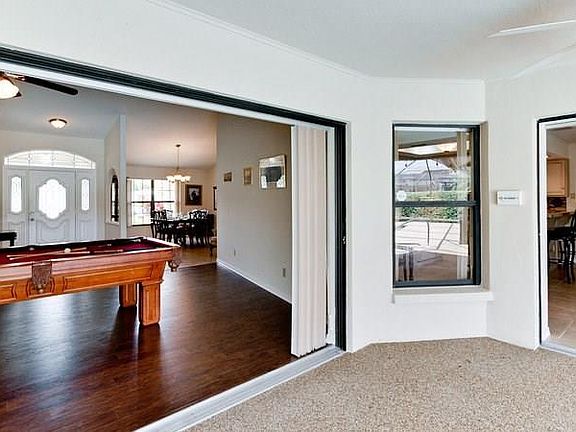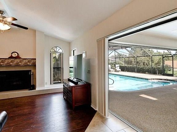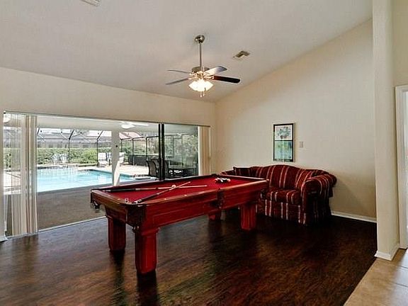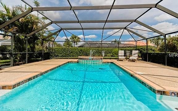 Upon entering this pristine home you will be struck by the expansive resort style pool, spa and extensive lanai that beckons you to relax. The volume ceilings, beautiful tiled floor and neutral soft palette add to the feel of coastal contemporary. Imagine cooking and chatting with the family, as there is plenty of space for gatherings in the updated OPEN kitchen/family room. The kitchen boasts quartz countertops and an island to prepare your favorite meals. Note the designer touch as the tile that extends from the kitchen wraps to the fireplace to make a seamless transition. The Master Bedroom is a private oasis with pool/spa view and has very large master bath... HIS/HER walk in closets, separate vanities(2), makeup counter, separate shower and separate bathtub. The large laundry room has built in cabinetry and leads to the 2 car garage which has built in storage. Peridia Golf and Country Club is a sought after golf community where lifestyle is easy and convenient with a clubhouse, restaurant, golf shop, heated pool and tennis/pickleball courts. There is an annual $450 minimum for food and beverage, $100 membership transfer fee and a $1,100 one-time capital reserve contribution payment due at closing from the buyer. Whether you like to be involved in lots of activities or just want to stay put and relax- Peridia has it all.