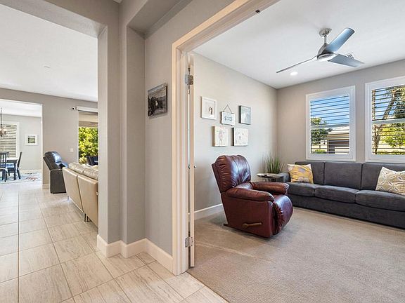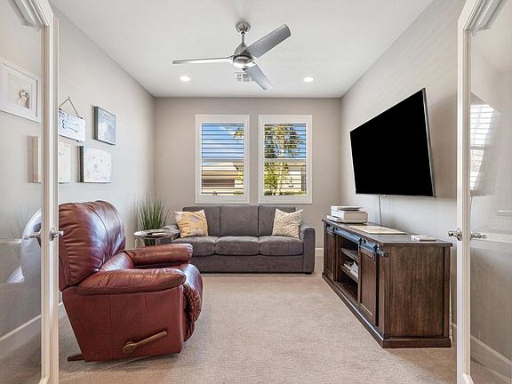 Stunning 'Nice' Model built by Shea Homes - Fully Furnished & Upgraded! Discover this beautifully upgraded Shea Nice model on a desirable corner lot in the all-ages section! Featuring an enclosed den with a door, perfect for use as a third bedroom or office, this home offers both style and functionality. The chef's kitchen is a standout, boasting upgraded cabinetry, premium appliances, and ample storage. With over $100K in upgrades, this home includes an air scrubber in the attic, sliding glass doors off the dining and living room, a water softener, a garage mini-split system, built-in laundry cabinets, smart thermostat, window treatments, and more! Seamlessly blending indoor and outdoor living, enjoy a smooth tile transition to the covered patio--ideal for relaxing or entertaining. The backyard has artificial turf and features a built in BBQ with stove and is adorned with citrus trees, adding charm and a touch of nature. As a bonus, because these homeowners have a club membership, the optional club membership transfer fee is only $1,875 (a huge savings from $12,500)! The club offers tennis & pickleball courts, a fitness center, resort-style pool, billiards room, meeting spaces, a restaurant, and more. Club dues are $210/month (optional), while the standard HOA is $245/month. Don't miss this exceptional home--schedule your showing today!