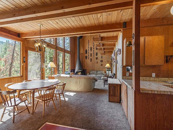 WELCOME TO THE MOUNTAINS! And welcome home to this SUNNY, classic riverfront cabin with a wall of windows overlooking the Yuba River with retro fireplace. Enjoy wood beam cathedral ceilings throughout this rustic home, lovingly built by original family + never on the market previously! Relax in the riverview suspended chair in loft that sleeps a bunch... and don't miss the loft above the loft! Nestled in the heart of the Sierra. 1/4 mile section of South Yuba River fronting property is available separately.