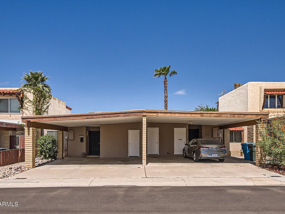 Enjoy comfortable convenience in this ideally located Phoenix patio home. This interior unit has a private yard with shade and grass, spacious back patio, and the community pool is steps away from your front door! No hauling groceries through parking lots with direct-entry covered carport. Features include wood-look laminate flooring throughout, roof resurfaced in 2023, updated kitchen and baths, walk-in pantry, and water heater replaced in 2022. Bonus: plumbing and appliances were relocated to move washer & dryer inside! Easy access within 2 miles or less to multiple shopping centers (Target, Costco), restaurants (OHSO, Vig Arcadia), hiking (Papago Park) and entertainment (Phoenix Zoo, Desert Botanical Gardens) make this a can't-miss! Plus incredible greenbelt access .5 mile away!