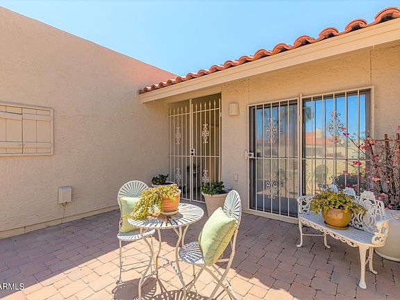 AMAZING Single Level Updated TWO BEDROOM with TWO CAR GARAGE *QUIET INTERIOR LOCATION *Very close to OLD TOWN SCOTTSDALE, Fashion Square Mall, Scottsdale's Waterfront & Greenbelt *UPGRADED FARM STYLE KITCHEN features high quality wood SHAKER STYLE CABINETS, GRANITE SLAB COUNTERTOPS & Bonus Breakfast Nook/Office/Hobby or Pet Space with WALL OF BUILT-INS! *Check out the SPICE DRAW! Spacious Living Room with vaulted ceiling, FIREPLACE, updated lighting & PLANTATION SHUTTERS *LARGE SCALE NEUTRAL TILE throughout entire home *Most FURNITURE is available by separate agreement *MASTER SUITE is large, features a slider to patio, walk-in closet & UPDATED TILED shower and DOUBLE SINKS *FLOORING IS LARGE SCALE TILE THROUGHOUT * *Second Bedroom is currently being used as a home office *FULL HALL