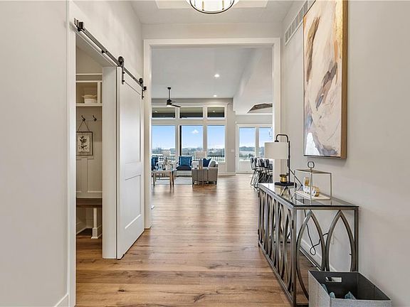 Gorgeous Windsor Reverse Ranch 1.5 Story floorplan is loaded with design features and custom upgrades everywhere you look! Featuring over 3500 sq ft, starting with a spacious entry that leads to an oversized great room with 12' ceilings, fireplace, built-in cabinetry, and curved staircase. This chef's kitchen is complete with a huge kitchen island, gas 5-burner cooktop, built-in appliances, and custom walk-in pantry. The main floor also features 10' ceilings and 8' doors, a guest/office with vaulted ceiling and a primary bedroom suite that is the perfect retreat! French doors lead from your bedroom into the spa like bathroom with a freestanding tub and a large zero-entry shower. Custom walk-in closet w/pull down bars in the laundry room. A spacious rec room featuring a full wet bar, two bedrooms, bath plus another full bathroom. Enjoy living and entertaining outdoors with a covered deck and covered patio below leading to your treed backyard! NOTE: Buyers still have time to make design selections before cabinets go in, better hurry!