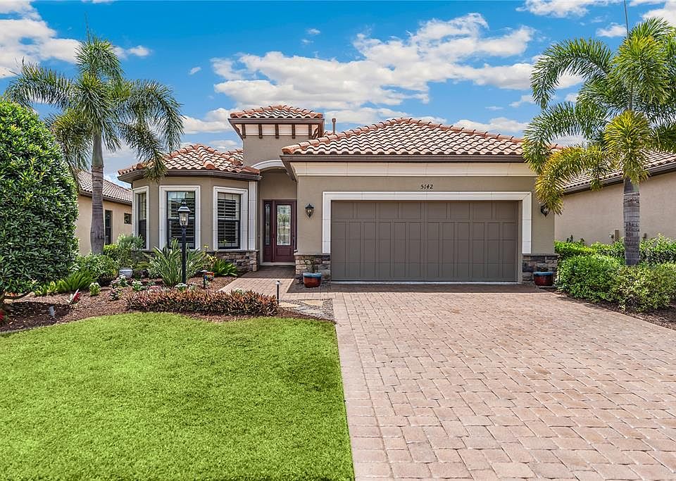 Experience resort-style living in this expansive Lazio model nestled on a private lot within the gated confines of Esplanade Golf & Country Club in Lakewood Ranch. Boasting Taylor Morrison’s renowned craftsmanship, this home spans 2,332 sq. ft., offering 3 bedrooms, 3 full baths, a study, and an extended two-car garage. Step into a realm of understated elegance, where neutral tones and abundant natural light greet you. Ceramic tile flows seamlessly through the vast living spaces. The gourmet kitchen, adorned with stainless steel GE Café appliances, granite countertops, and tiled backsplash, invites culinary exploration. A huge island and a breakfast area with sliders to the lanai seamlessly blend indoor and outdoor living. Entertain effortlessly in the great room and dining area, which open to panoramic views of the outdoor oasis. The expansive covered lanai, complete with multiple seating areas, an outdoor kitchen, and a sparkling pool and spa, beckons relaxation and social gatherings alike. Retreat to the primary suite, featuring a tray ceiling, bay windows, and a spa-style bathroom with an oversized shower, elongated vanity, and a sprawling walk-in closet with custom built-ins. Guests will relish the comfort of the large secondary bedrooms and two guest baths. The generously proportioned study boasts built-in wine storage for 622 bottles, while the large laundry room features built-in cabinets for ample storage. Additional features include a Kohler 20 KW whole house generator, whole house surge protection, powered hurricane drapes, Hunter Douglas plantation shutters, upgraded shower glass and doors, built-in surround sound, and a HALO whole-house air purification system. Esplanade offers an array of world-class amenities, including an 18-hole golf course, resort pools, tennis courts, pickleball courts, and the Koquina Sand Spa. Indulge in onsite dining at the Culinary Center or explore nearby attractions such as Lakewood Ranch Main St, Lakewood Ranch Waterside, and Sarasota’s vibrant cultural scene. Discover the epitome of luxury living in Lakewood Ranch. Schedule your private viewing today to experience the unparalleled lifestyle offered by this exquisite home.