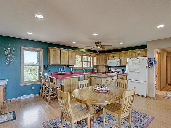 Over 35 acres of land with custom built ranch home. Steel frame built with screws, no nails. The custom Amish Kitchen cabinets and six panel doors show how nice this home is. Built by current owner and only a job transfer has made this sale possible. 3 bedroom, 3 full bathrooms. Main Floor master with huge walk in closet, Whirlpool tub. Popular main floor laundry. Walk out lower level and beautiful deck that over looks your land. 24 x 30 Metal outbuilding with power for all the toys. Amazing views from the living room. Enjoy this perfect size Ranch with incredible lot