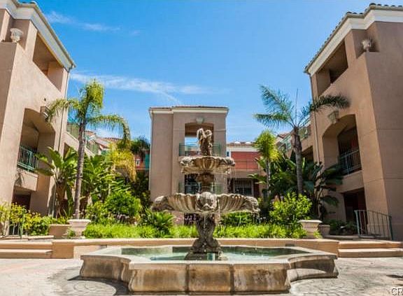Now is your opportunity to own this fantastic interior location condo! This beautiful 2 Bedroom is located in the gated Mediterranean style Villa Milano complex with only 33 units! It does not back or side to any busy streets and faces an interior fountain. The interior features polished wood flooring and an attractive wrap around fireplace. Both bedrooms are spacious. Elevator access to this unit from parking garage. This home features a private rear yard for entertaining. HOA amenities include a resort style pool, spa, BBQs and eating areas and this home is located only 1 mile from the ocean and within walking distance to Starbucks! Privately gated parking garage with bicycle racks for those that prefer to bike to the beach!