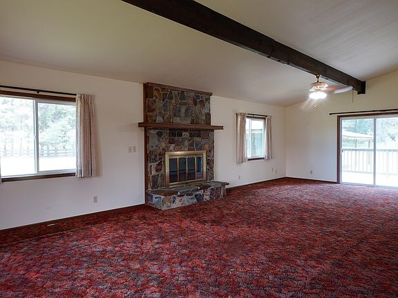 - Fireplace features: Built In Fireplace, Glass Doors, Raised Hearth, Stone, Wood Burning