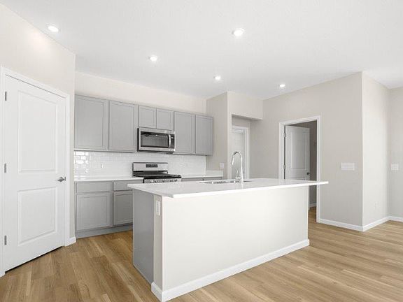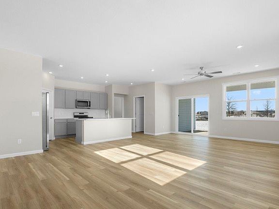 Presenting the Wabash paired villa plan. The Erie features 1,696 square feet of single-level living featuring 2 bedrooms, flex room, 2 full baths, and a finished 2-car garage. Villa living includes irrigation, snow removal, lawn care, and landscaping services, making homeownership easier than ever. The kitchen includes a pantry, large island with room for seating, grey cabinets with 36in uppers, lever cabinet hardware, stainless steel appliances with gas range, semi-gloss artic white backsplash, and frozen ice countertops. The primary bedroom features an ensuite closet and bathroom with cultured white marble countertops on a dual sink vanity, white matte ceramic tile shower, and double hung ventilated shelving. Additional features include 9 ft walls, a finished garage, 52in ceiling fan, framed windows with casing, and covered porch. The exterior is finished with low maintenance satin grey siding, grey shutters, and eclipse stone. This home includes Americas Smart Home® Technology which allows you to monitor and control your home from your couch or from 500 miles away and connect to your home with your smartphone, tablet, or computer. Call today and make the Wabash your home!
