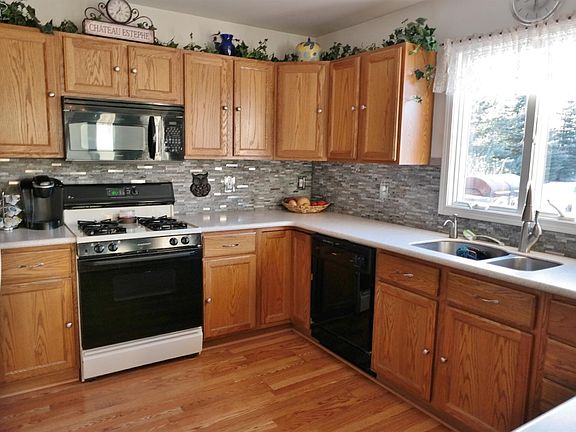 Beautiful home on over 5 acres of property. Kitchen features Corian counters and updated back splash, first floor laundry and floor to ceiling windows offer tons of natural light in the Great Room. Walk out lower level, pole barn and pond fully stocked with fish! Close to amenities!