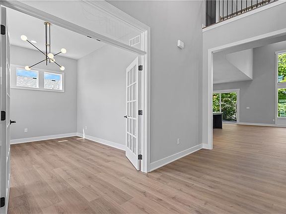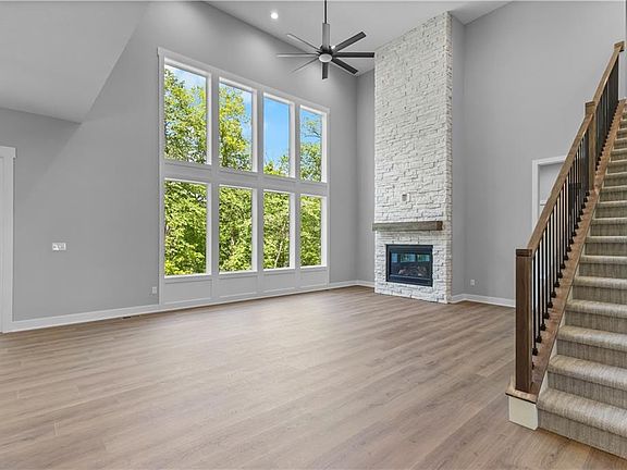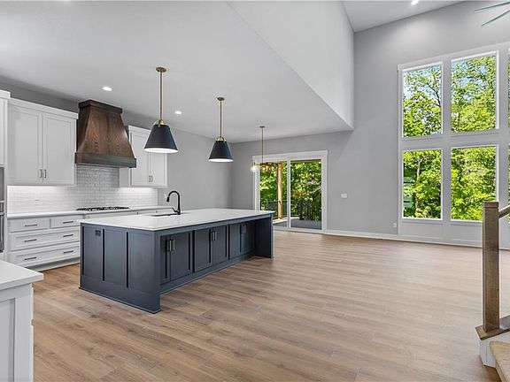 The Opus II is a stunning blend of modern design and thoughtful functionality, offering 6 bedrooms, 5 bathrooms, and an oversized 3-car garage with an impressive 24’ depth. Perfectly positioned on a walkout lot, this home features a covered deck and lower-level patio, creating seamless indoor-outdoor living. The great room is a true centerpiece, showcasing custom built-ins with floating shelves, while the chef-inspired kitchen impresses with upgraded quartz countertops, a prep kitchen, and a large walk-in pantry. The main level offers exceptional flexibility with a bedroom and full bath, plus a private office featuring glass-front double doors. Retreat to the spacious primary suite, complete with a freestanding soaking tub, an enlarged shower, and a generous walk-in closet. The finished lower level expands your living space with a large recreation room, wet bar, and cozy fireplace—perfect for entertaining or relaxing. Throughout the home, you’ll find a modern trim package, accent walls, and extensive trim and tile upgrades that elevate every space. Scheduled completion is set for June 2026.