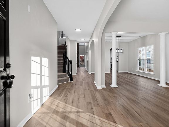 Modern light fixtures throughoutFresh interior paintOpen kitchenGrand entryPainted cabinetsRefreshed bathroomsDramatic floor-to-ceiling fireplace