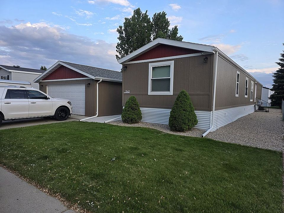 Step into this beautifully updated 3 bed, 2 bath home. This 1998 home offers 1216 sq ft of living space. Located in the desirable Century Park development. Complete refresh on this property with excellent maintenance history! Excellent starter home that offers economical living and low maintenance. Open concept living and kitchen area with lots of cabinets. The master bedroom is huge and spacious while fitting a king sized bed comfortably. Master walk-in closet offers lots of shelving and storage. Master bath features a custom tiled shower with a linen closet. Other 2 bedrooms offer closets and a full bathroom. Always maintained and never had any issues with this well built home. Very low taxes on this property. Lot rent (cheapest in the area) covers water, sewer, garbage, street maintenance and snow removal, taxes for the land, & city special assessments. Schedule a showing today to view this beautiful property. Interior features: -Craftsman style trim throughout the home -New paint on all surfaces of entire home. -Lots of shelving in the laundry room for essentials. -Custom master bath with a custom shower. -Durable hard surface flooring throughout the entire home. No need to worry about having to deal with carpet stains, spills, odors, etc. -Backsplash in kitchen and bathrooms. -Black Bean cabinetry throughout the home. -Newer countertops that offer plentiful countertop space with a deep quartz sink. -All bedrooms have black out shades for sleeping. Exterior features: -2x6 wall construction with maintenance free LP Smartside siding. -New shingles in 2023 across everything. -New exterior paint in 2023. -Maintenance free fiberglass entry doors along with newer windows and skylights. -Newer stained deck -Paver block patio that is prewired for a hot tub. -8x8 storage shed. -Parking pad for additional driveway space. -Landscaped yard with edging and underground sprinklers. -Honeycrisp apple tree -Security Cameras across all angles of property Garage features: -Insulated and heated -Has 220v prewired -Lots of attic storage -Over 70 combined square feet of wall shelving for storage -Wired for audio speaker system