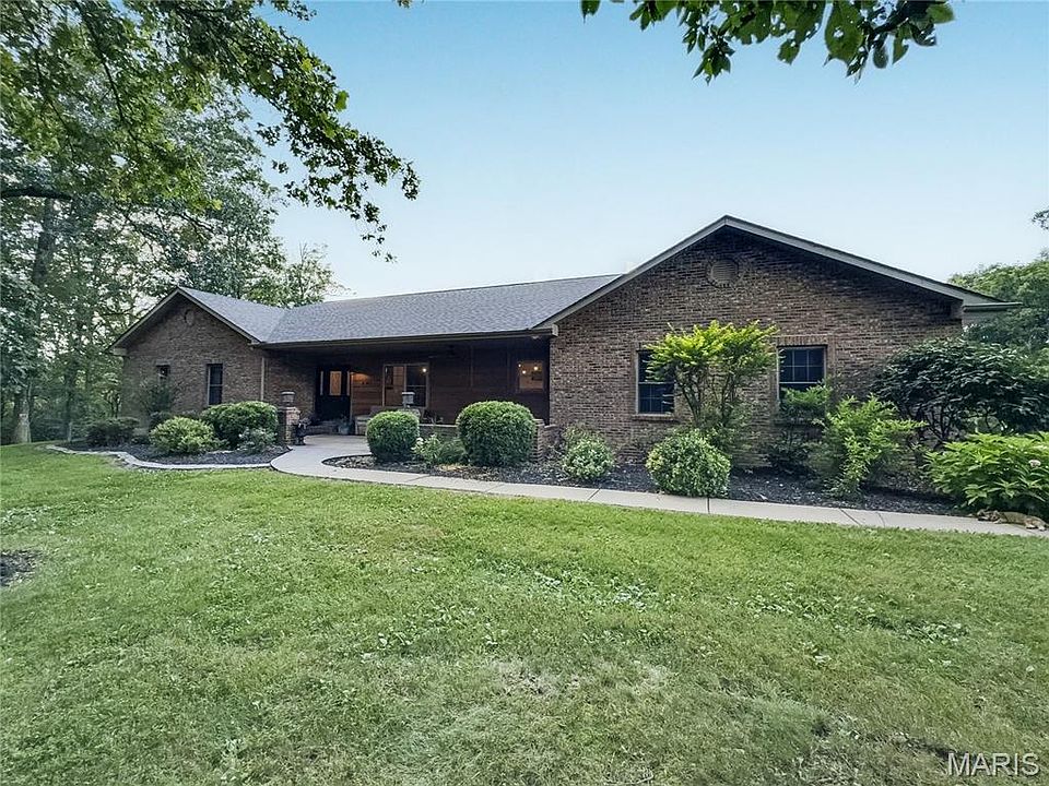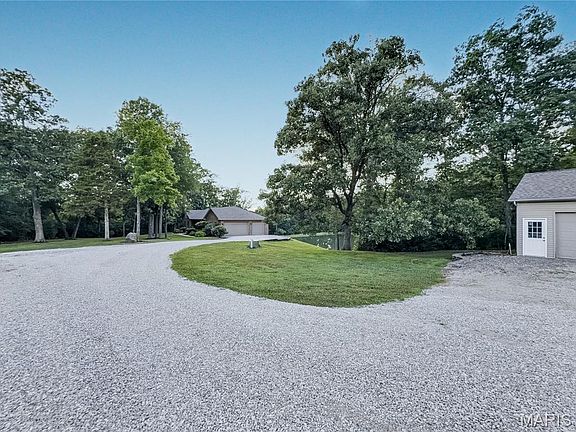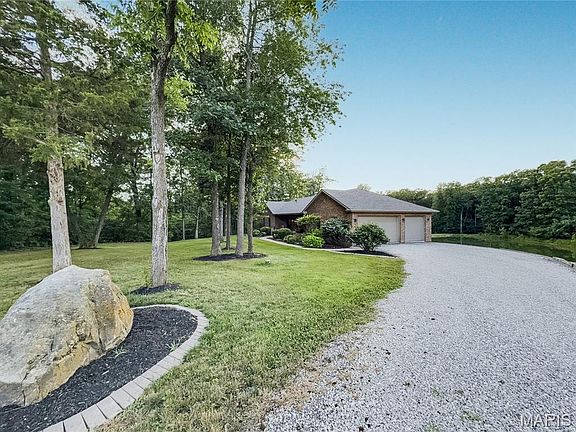 This unique, one-owner home is a true gem located in rural Monroe County. Conveniently located just 8 minutes from Waterloo, 25 minutes from South County & 38 minutes from downtown STL. The 3-bed, 3-bath property offers the perfect blend of luxury, comfort, and outdoor living nestled on 8+ acres of scenic beauty. Surrounded by mature trees, the property offers a private glimpse into nature with its park-like setting, with various wildlife including deer, turkey, duck, & geese. For deer hunters, there are 3 stands that have all had quality deer harvested from displayed in the home. The west property line borders the 20-acre Sportsman Club Lake, adding to your privacy and scenic views. The back deck overlooks your private ½-acre, fully stocked pond - complete with a dock and teeming with bass, bluegill, and crappie. Inside, you’ll find over 3,000 sq ft of finished living space featuring Brazilian cherry wood floors, 2 fireplaces, 9-ft ceilings, built-in bookshelves, & Anderson windows. The walkout basement offers a spacious family/rec room, kitchenette, craft room, bathroom, home theatre setup, and 300 sq ft of storage with built-in shelving. The home is complemented with geothermal HVAC, and both an attached garage and an additional detached garage. There have also been numerous improvements, such as new appliances, new roof, remodeled bathrooms & new interior doors. This rare property offers every amenity you could need.