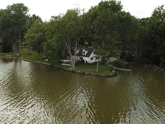 Breathtaking view adorns this spectacular prime lakefront 2700+SF 4 bedroom/3bath stone front accented Cape Cod. This extravagant "Piece of Paradise" is bordered on 2 sides by the lake's shore, among mature trees & nature loving landscaping, nestled at the end of a secluded cul-de-sac. Beautifully updated equipped kitchen with attractive white cabinetry & breakfast bar, complimented with hues of gray tile back splash & counters. Adjoining dining room with corner gas fireplace & handsome white wainscoting highlights. Huge inviting living room welcomes you upon entry. Striking updated baths. Newer carpet & flooring. Two bedrooms/ 2 baths on the first floor, as well as 2 bedrooms & bath on the 2nd floor. Relax & absorb the peaceful, picturesque surroundings as you lounge in the lakefront sunroom. Tiered rear deck & full front porch. Private dock. 2 car garage. An absolute Rare Opportunity to reward yourself with the ultimate year round "Lake Living".