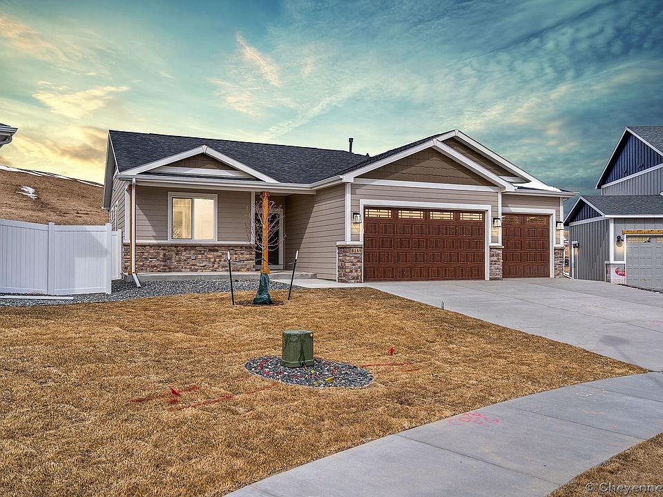 This spacious ranch-style home has so much to offer! Beautiful finishes including white and grey cabinets, quartz counters, hardwood floors, fireplace, AC, front and back yard landscaping and fence. Charming! Close to everything and move-in-ready! Spectacular views, walking path, and park! Too new for GPS. Dell Range to Connie to Sullivan. Sullivan turns into Carla.