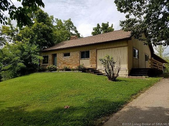 Mini Farm complete with fenced in pasture, 3 stall barn, chicken coop/ outbuilding with electric and large openyard. This ranch style house is a 3 bdr 1 full bthr home with an unfinished walkout basement, 2 car garage and a 2 car attached carport. Paved driveway with beautiful country view. Entire home features laminate flooring with bathroom and kitchen featuring tile. Open floor plan and large living room with decorative fireplace. Kitchen island/prep table with all kitchen appliances staying. Lanesville school district, 0.8 miles off the Lanesville exit on I64 and 17miles to Louisville. Located on a dead end road. This home is such a convenient location no matter the direction you are headed. There are 2 dogs on the property (one is a puppy) they are very friendly!