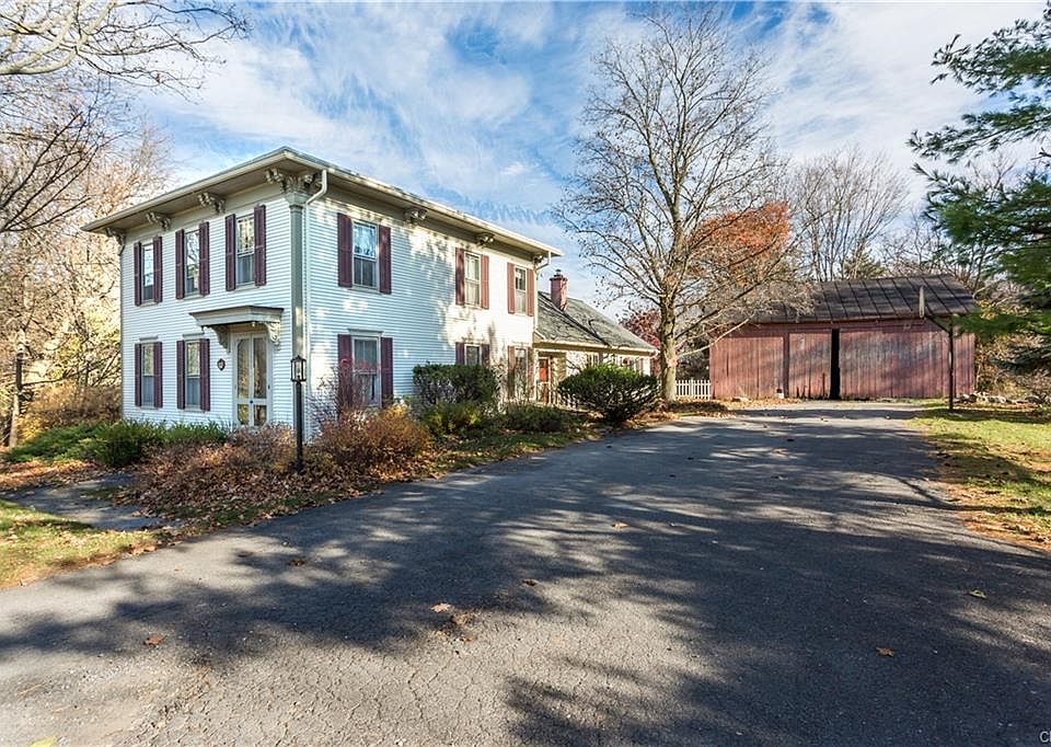 Expanded Victorianfarmhouse with extensive improvements, and minutes from shopping, major highways. Original home dates to 1870, later addition is perfectly set up for modern living. Custom kitchen with solid wood cabinets, under cabinet lighting, soap stonecounters, and unique cast stove overlooks breakfast nook. Adjacent family room with woodstove, exposed brick and wide plank flooring; screen porch with views of privateyard/in-ground pool is convenientlyaccessed off of the kitchen eating area.Formal dining and living room feature original wood flooring. First floor laundry is a welcome amenity. Dual staircases, three bedrooms up and bonus room with custom cabinetry/storage space as well as renovated full bath with tile shower, separate soaking tub.Beautiful yard is filled with perennial gardens, two story barn, chicken coop, large paved drivewaywith turn around. Recent roofing/soffit replacement, one of many major investments during current stewardship of this architecturally significant home; there is a complete outline of improvements availablewithin attachments. West Genesee Schools and only a short drive to Onondaga Community College. 2021-01-20
