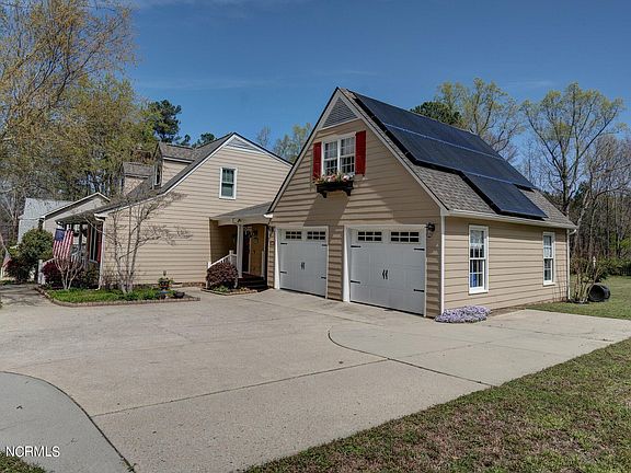 LOOKING FOR A PEACEFUL RETREAT IN EASTERN WAKE COUNTY? Here it is!! Cozy Cape Cod in Grenelefe Point Subdivision. Country Living with No city tax and NO HOA fees. 2294 Heated sq. ft. that has been EXTENSIVELY UPDATED & MAINTAINED. Too many features to list them here. List of FEATURES available along with receipts for Roof, HVAC, Well, and septic. All you have to do is MOVE IN!! Copies of utilities available as well. Lot has been landscaped and wonderful gardens that are lovely to view while sitting on the Enclosed 14x14 Sunroom. These owners paid attention to details. Wired for generator that will supply living room & water pump. Primary Bedroom with Bath downstairs along with an Office that can be a bedroom and Full Bath in hallway as well. 2 Large Bedrooms upstairs with Full bath and Fresh paint and NEW CARPET. Stainless appliances with BOSCH dishwasher and Refrigerator stays!! Solar panels help make home efficient. They supply Hot Water and the panels on garage supplements electric. Plantation shutter blinds in Bay window and Master Bedroom. Wired 16x24 workshop that has been all insulated. Detached oversize Garage connected by Breezeway and room above garage as well. Anderson windows vinyl replaced. 2019 Trane HVAC with 3 zones. 2020 Roof Architectural shingles. Septic service, Well service, Dehumidification service, HVAC service done on a regular basis. Hardiplank Siding. Water softener system. Simply Safe Security system. Extra parking spaces. Close to the cul de sac. All on a .86 acre lot. Encapsulated crawlspace with Dehumidifier. EFFICIENT, LOVED, and READY for a new owner. Call TODAY!!