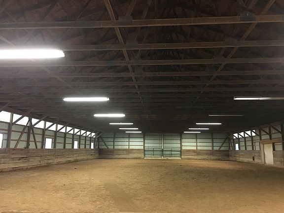 Beautiful, well taken care of 2 bedroom, 1 1/2 bath home attached to 70 * 140 foot metal building/riding arena. New roof- March, 2019. Home to include refrigerator, stove, new microwave, dishwasher and all window blinds. Updated Master bath- new shower/hardware & porcelain tile flooring. Featuring 5 total acres with 2 pastures separated by a dry lot with a run-in shelter which has running water and electricity. Arena could be used for training/boarding horses, hobby farm/animals/feed storage, camper/boat/RV/equipment storage. Possibilities are endless!