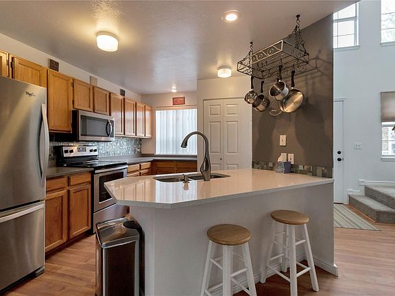 Wow! Nicely updated 2 bed/2 bath townhouse. Kitchen has Stainless appliances, Quartz counter tops, Gorgeous back splash w/under cabinet lighting. 2 good size bedrooms and an Amazing remodeled full bathroom! 2017 furnace and AC. Plus, enjoy a relaxing Private back patio. This wonderful townhouse has an Oversized 1 car detached Garage to boot! Bonus, it is about 1/2 mile to walk to the new light rail station/public transportation. 5 minutes to I-70 to go the mountains, 10 minutes to Regis University, golf courses, and Old town Arvada.* Showings start Friday @12pm. No exceptions. Quick possession. Buyer to verify all information of property, HOA, water,etc. **If Multiple offers occur, ALL offers must be in by Monday @12pm. Pease put acceptance deadline for Tuesday 5pm** Unit #3 sign is on the side of front door.