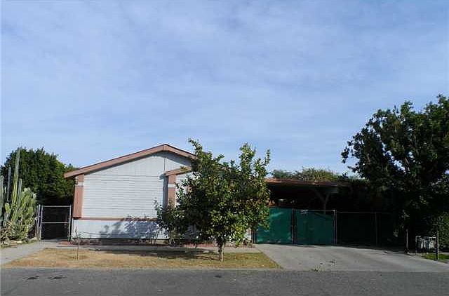Nice 4 bedroom, 2 bath manufactured home in the gated community of Las Palmeras Estates. Home features a large living area, separate dining area, inside laundry room and a fenced yard. The community has a low HOA fee that includes use of the swimming pool, basketball court, park with playground and BBQ picnic area and a clubhouse. Easy access to the freeway and shopping. Buyer to confirm ALL info. Sold as is! See attachments to listing.